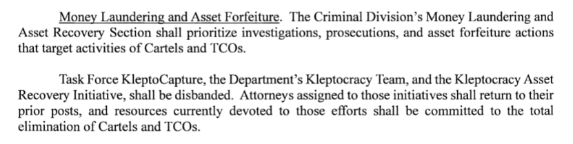 Trump and Bondi's dissolution creates immediate practical chaos. Prosecutors handling active kleptocracy cases have been left in limbo – do they simply drop their cases? If a foreign corrupt criminal walked into the U.S. today, would they simply walk free? (Asking for a friend, several oligarch subscribers may be asking.)