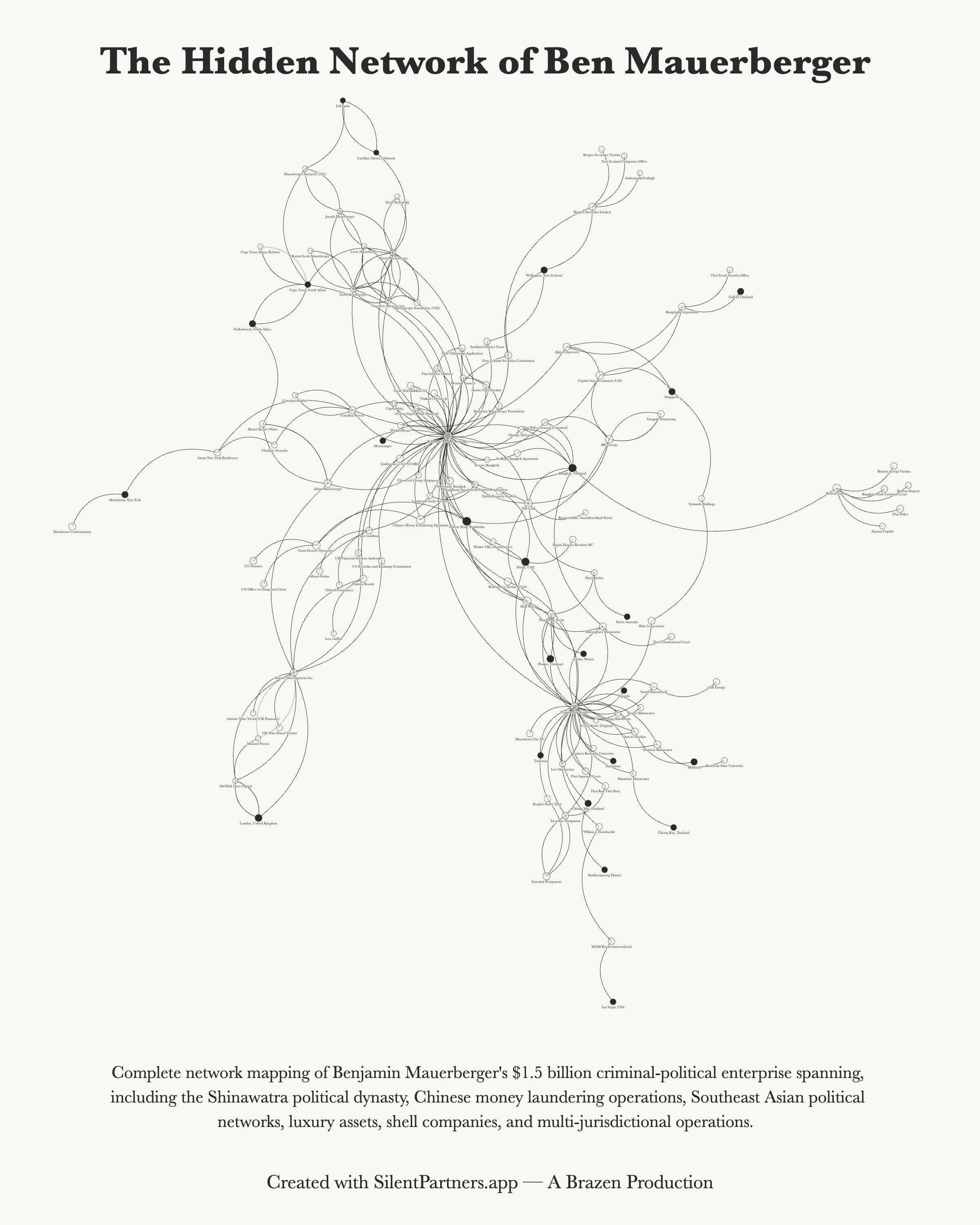 นี่คือเรื่องราวของ เบนจามิน เมาเออร์เบอร์เกอร์ บุคคลลึกลับผู้ซึ่งแม้จะมีอดีตที่เต็มไปด้วยอาชญากรรม แต่กลับกลายเป็นผู้จัดการด้านการเงินที่ขาดไม่ได้ของตระกูลผู้ปกครองของประเทศ การสืบสวนของเราเปิดเผยว่าอาชญากรที่ถูกตัดสินความผิดผู้นี้ ซึ่งใช้นามแฝงหลายชื่อ ได้สร้างอาณาจักรเงาของบริษัทและทรัพย์สินซึ่งมีมูลค่าประมาณ 1.5 พันล้านดอลลาร์ ตั้งแต่ "ห้องหลอกลวง" ในกรุงเทพฯ ไปจนถึงเพนต์เฮาส์หรูมูลค่า 20 ล้านดอลลาร์ในย่านเศรษฐีของนิวยอร์ก และเรือซูเปอร์ยอชต์มูลค่า 100 ล้านดอลลาร์ นี่คือเครือข่ายที่ได้นำตัวเองไปอยู่ในสายตาของรัฐบาลสหรัฐฯ โดยตรง